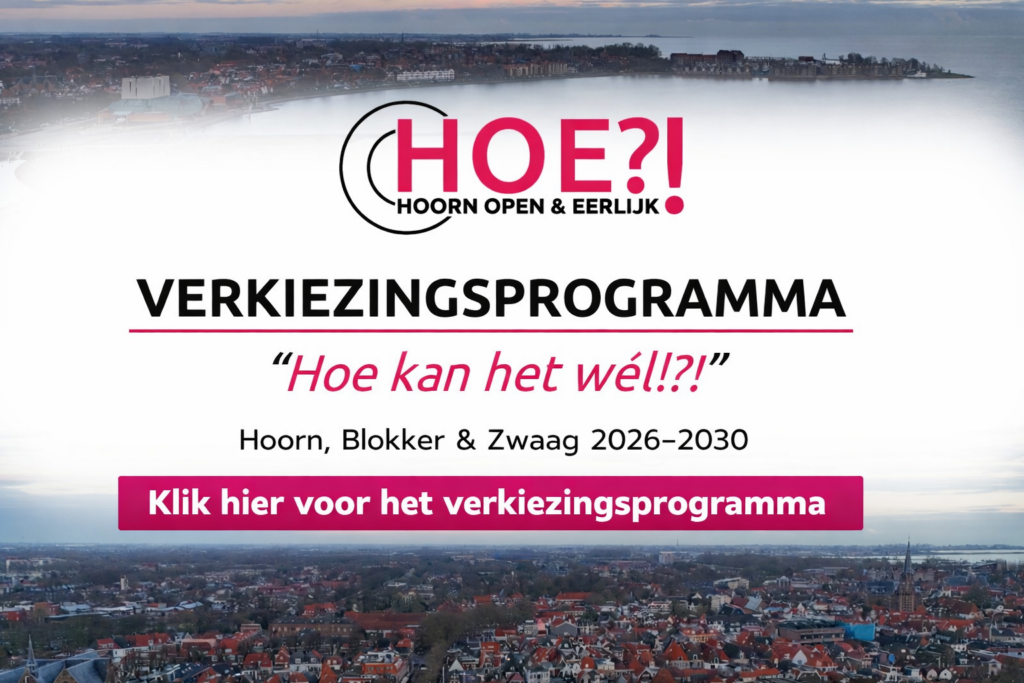 Hoorn Open & Eerlijk (HOE?!) doet voor het eerst mee aan de gemeenteraadsverkiezingen in Hoorn, Blokker en Zwaag. Ons verkiezingsprogramma “Hoe kan het wél?!” en de volledige kieslijst staan nu online. Benieuwd waar wij voor staan, wie onze kandidaten zijn en welke keuzes wij maken voor een open, eerlijke en leefbare gemeente?